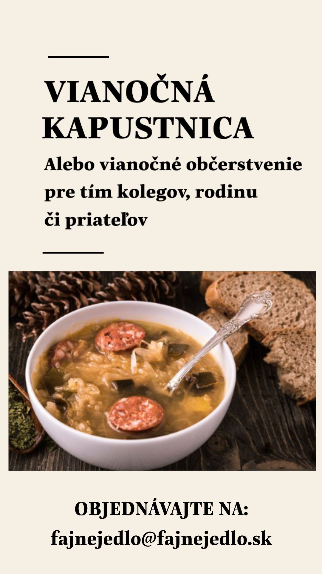 Fajne jedlo ponúka denne dva druhy polievok a niekoľko druhov hlavných jedál, vrátane zdravého vegetariánskeho menu, či prémiového exkluziv menu.